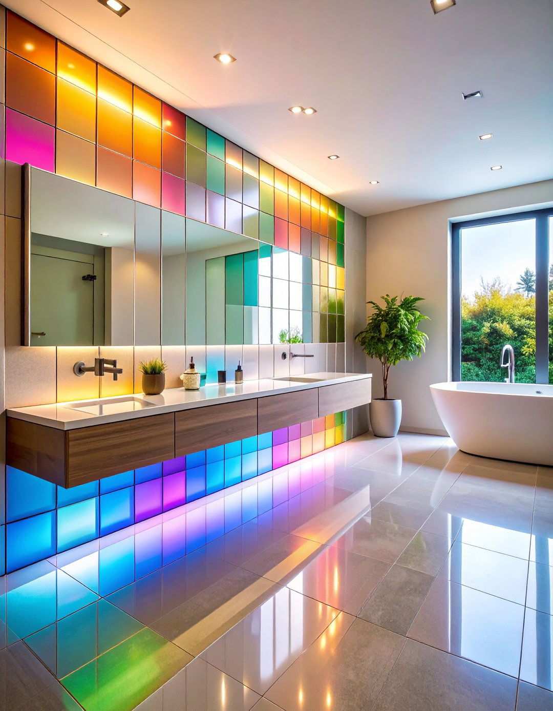 12. Space-Enhancing Mirrored Tile Backsplash
