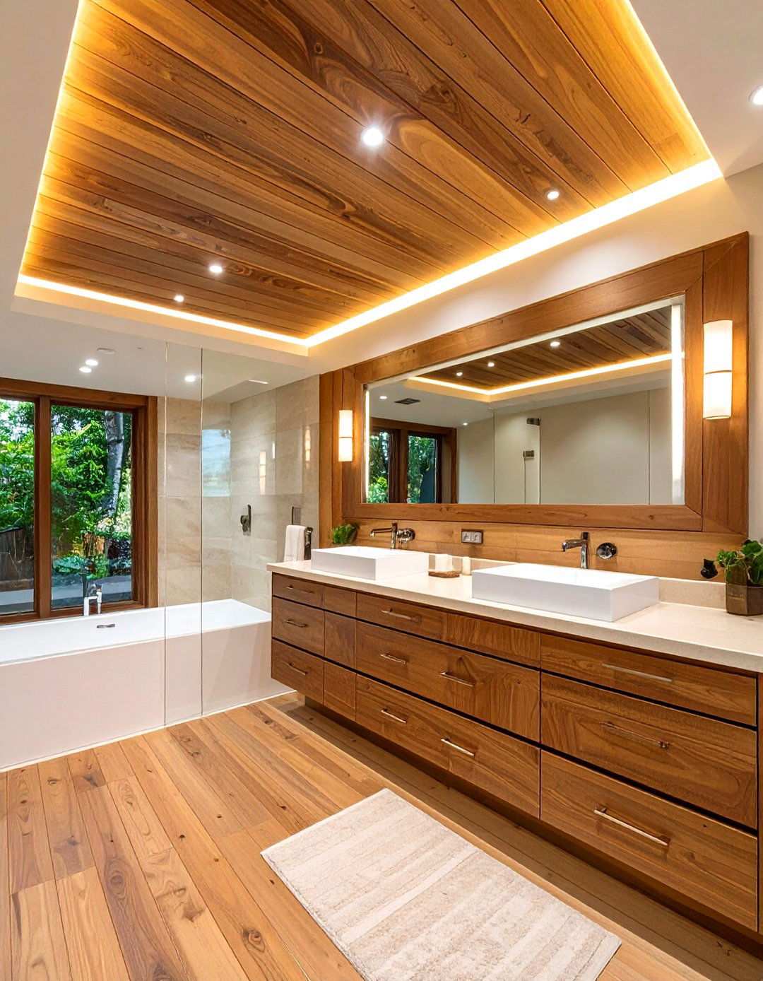 3. Soothing Wood-Slat Ceilings for a Spa Ambience