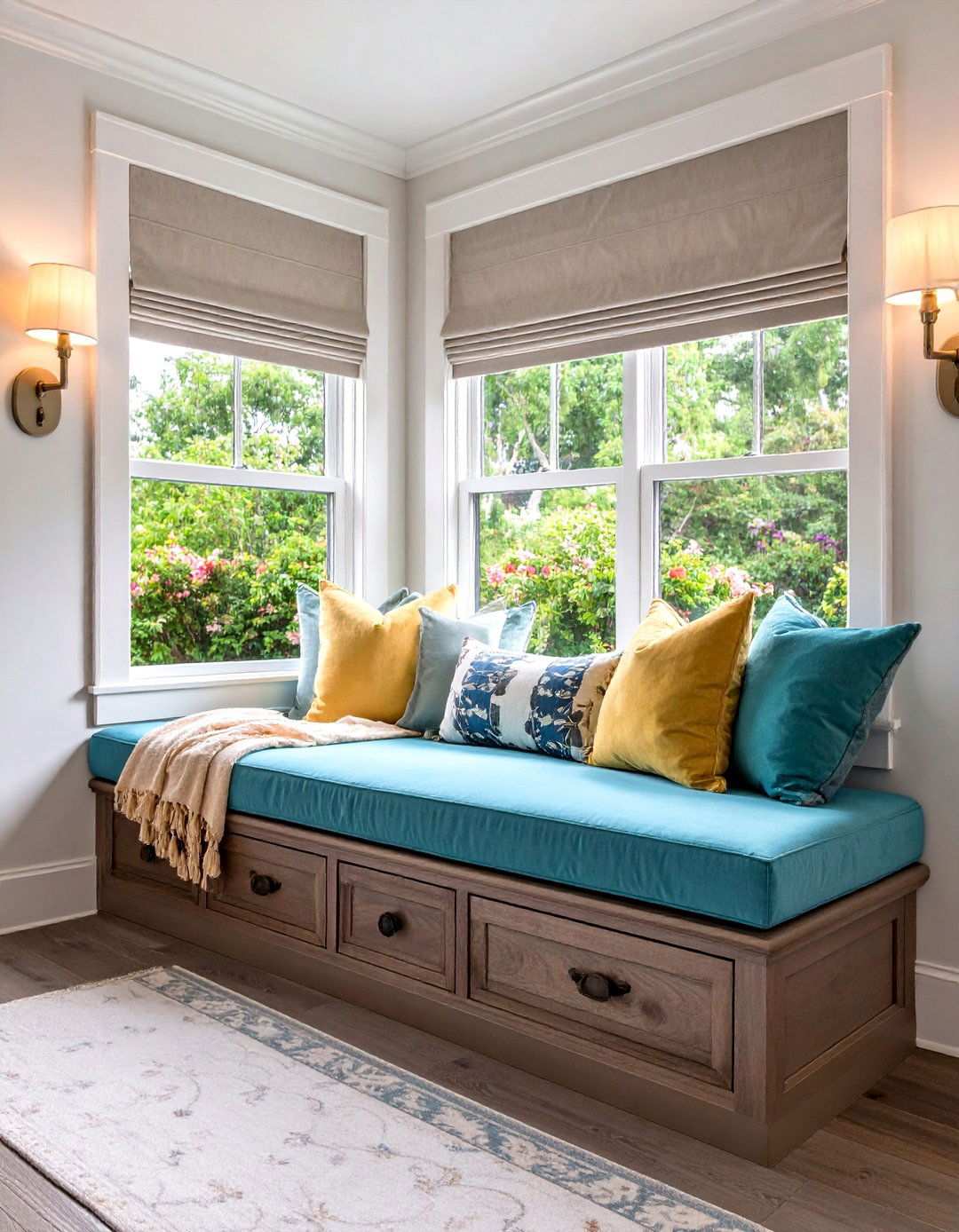 A built-in window seat is an inviting upgrade that instantly enhances a room’s functionality and aesthetic appeal. Design experts recommend incorporating a window seat in even the most compact spaces, as it provides seating, concealed storage, and a valuable selling point for potential buyers. When designing the seat, aim for a height of approximately 18 inches and a depth of around 20 inches, allowing it to serve as a comfortable reading nook or quiet workspace. Specify hinged lids that hide bedding sets, and deep drawers that can accommodate out-of-season items. Upholster the cushion with a performance fabric that resists fading from sunlight, and flank it with sconce lighting for ambiance. If the window faces direct sunlight, consider integrating top-down-bottom-up shades to control glare and allow for an even distribution of natural light.