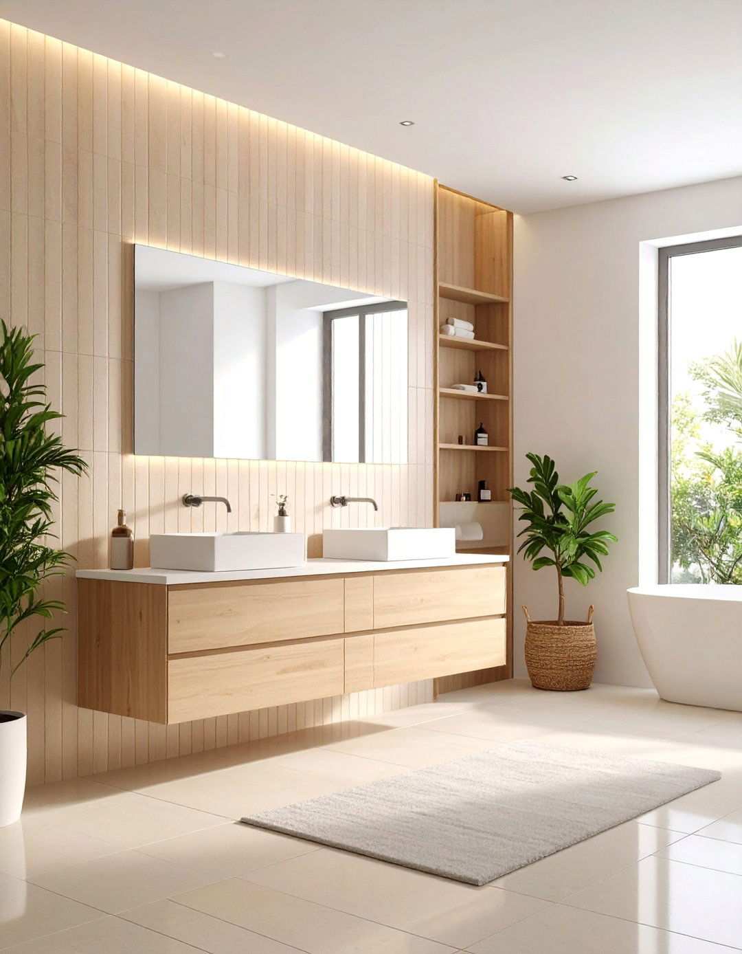 Layering different lighting types creates a welcoming atmosphere, especially when paired with beige tones at night and crisp whites during the day. By incorporating frosted glass sconces, back-lit mirrors, and dimmable downlights, you can achieve a balanced ambiance that doesn’t fall prey to stark shadows that often dull neutral palettes. Opt for bulbs with a warmth level of around 2700–3000 K for an inviting glow.