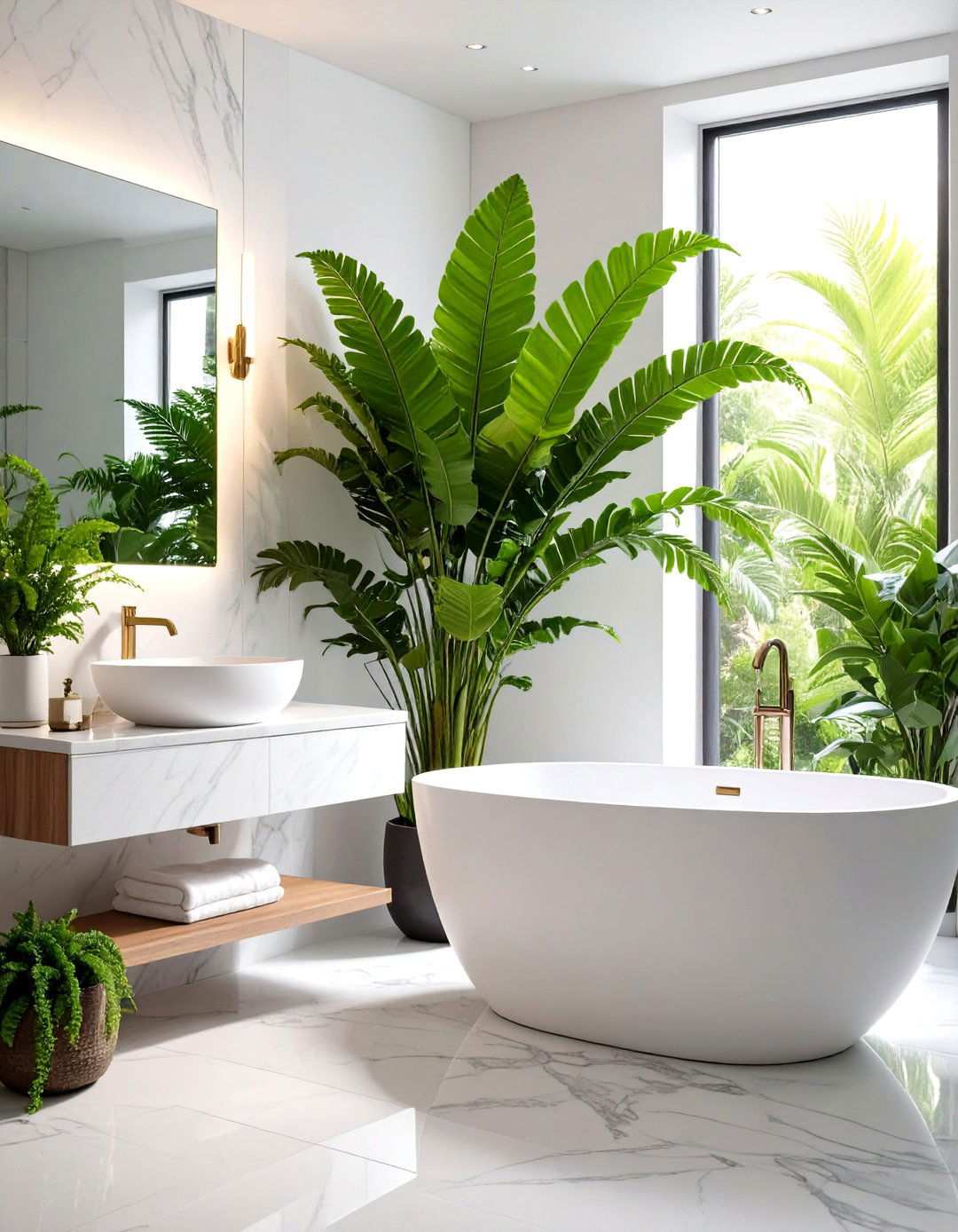 17. Elevating the Bathroom with the Sophisticated Appeal of Rubber Plants