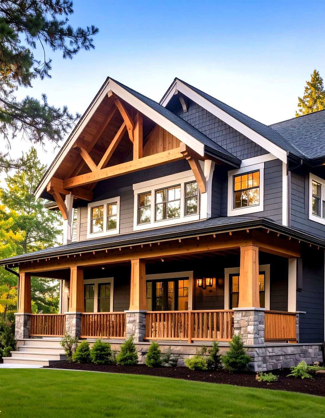 A natural-stone wainscot serves as a stunning anchor for black siding, protecting lower walls from splatter and introducing subtle color variation that prevents the façade from becoming a flat silhouette. By stopping the stone beneath window sills, a balanced datum is established, visually lowering tall elevations. To create a cohesive look, repeat the material on porch steps or garden walls, knitting the palette across the site.