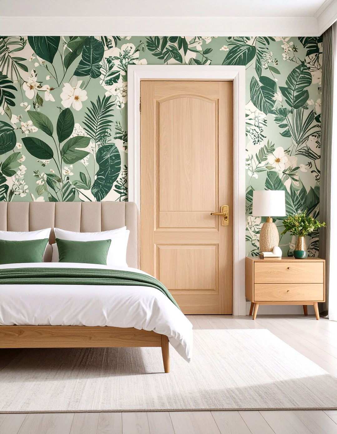 For a design that’s both stylish and temporary, consider removable wallpaper panels on your bedroom door. This innovative solution allows you to add pattern and personality without making a long-term commitment. Cut the peel-and-stick wallpaper into rectangles that mimic raised panels or cover the door entirely, and smooth it on without worrying about damaging most finishes. Choose from a wide range of designs, from large-scale botanicals for a whimsical touch to clean geometrics for a modern look. To ensure a seamless finish, burnish the seams with a plastic card to avoid bubbles. Plus, with repositionable fabric-finish papers that resist tearing, lining up repeat prints is a breeze. When trends shift, simply peel away the old design and try a new one in minutes – no sanding or priming required.