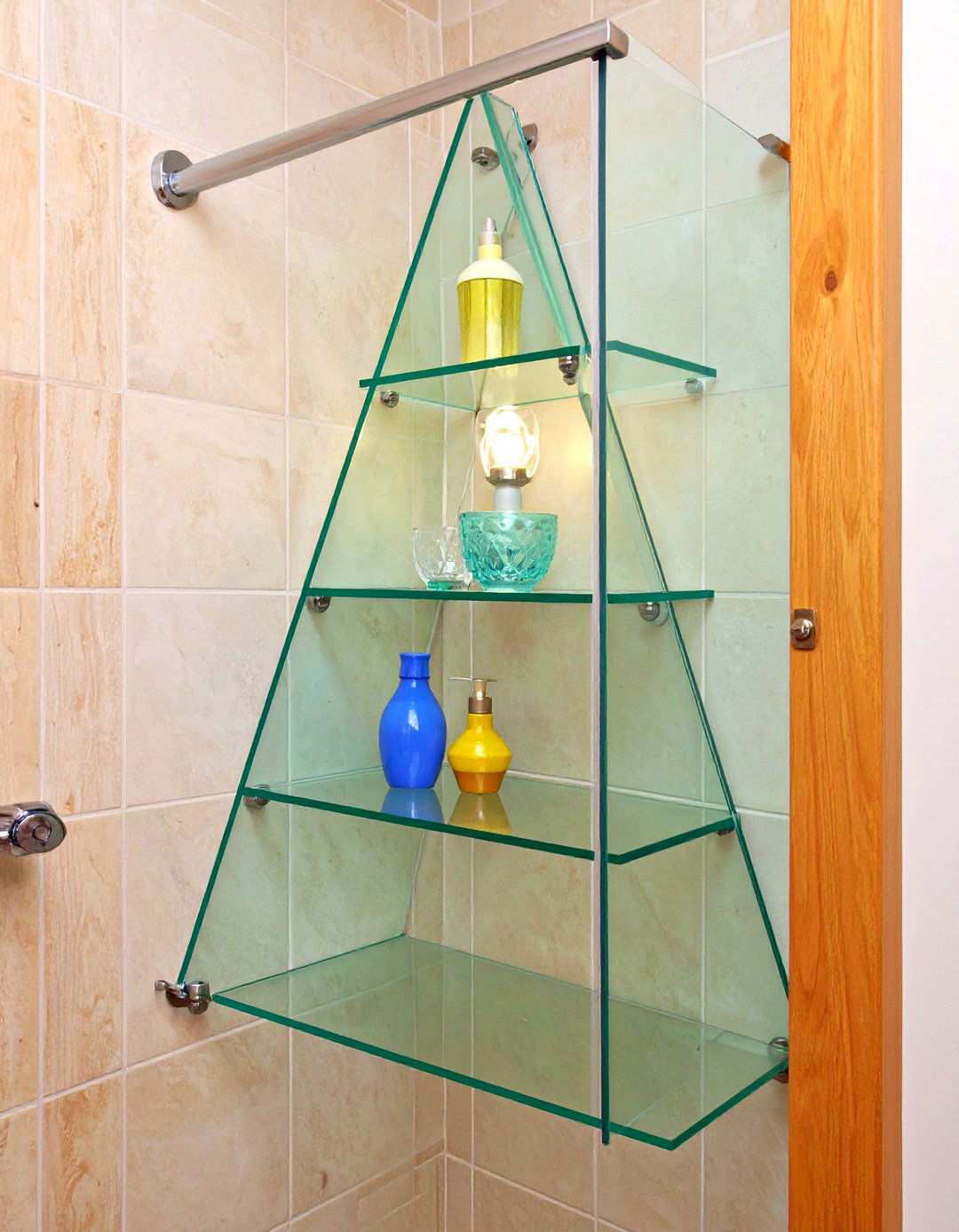 20. Futuristic Glass Bathroom Shelf with Ambient Lighting