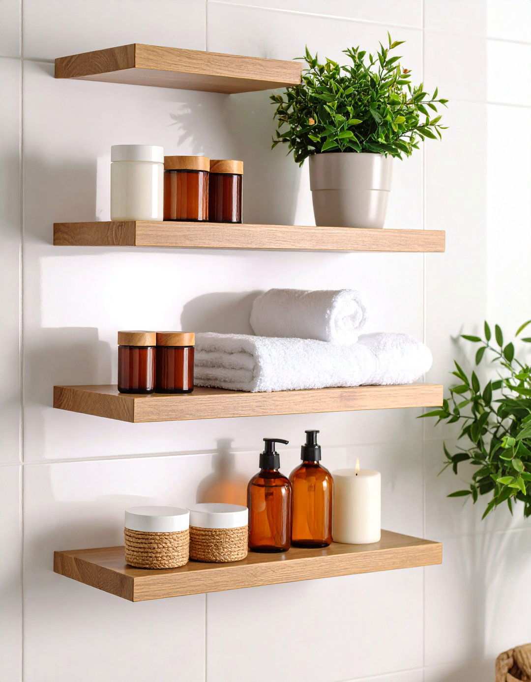 A thoughtful installation of floating shelves instantly sweeps clutter off the vanity and transforms bare walls into stylish display spaces. The latest search trends reveal a substantial 60 percent increase in interest for “bathroom floating shelves,” underscoring their universal appeal among renters and homeowners alike. For a secure and moisture-resistant setup, choose sturdy materials and anchor shelves into wall studs. Consider placing decorative items, such as a small potted plant or a candle, on the top shelf and reserving the lower shelf for essentials like cotton balls or folded face cloths. To maintain visual cohesion, use matching containers or labels to tie the look together.