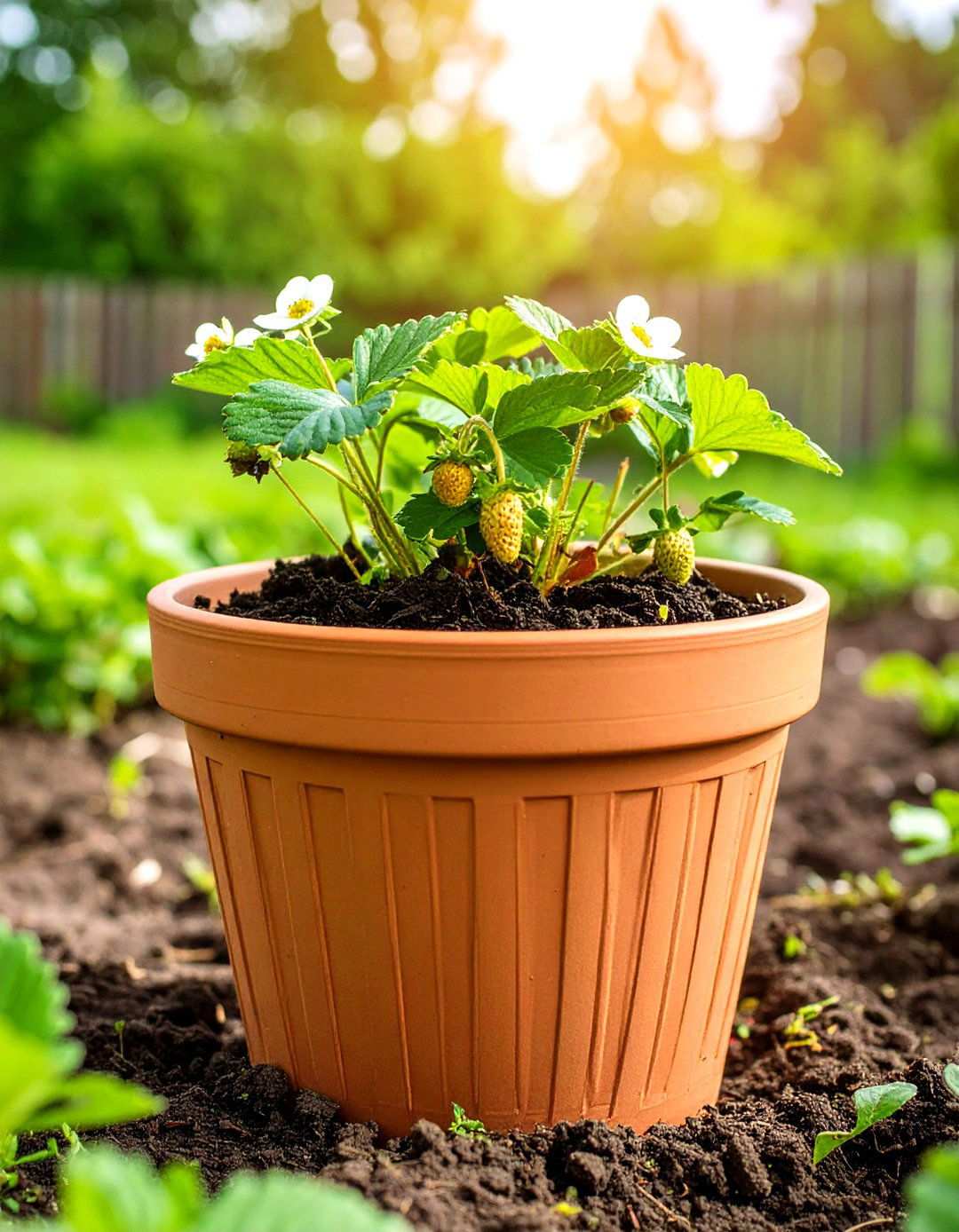 3. Terra-Cotta Strawberry Pot with Built-In Pockets