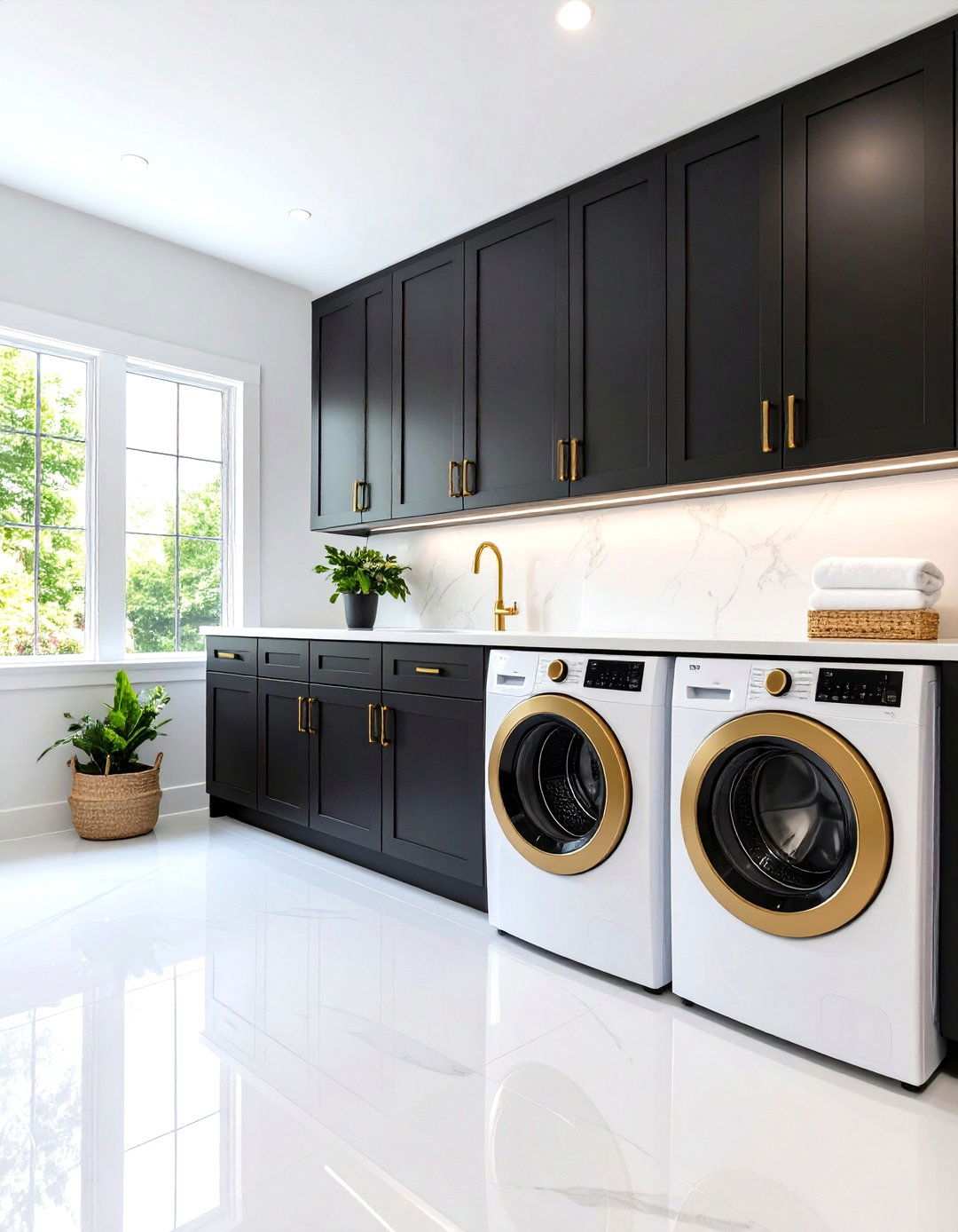 1. Elevating Laundry Spaces with Sophisticated Black Cabinets