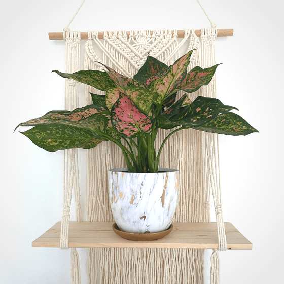 This aglaonema species has striking dark to light green foliage with a deep red edge stem. The flamingo pink color brings a bit of drama and elegance to your space.