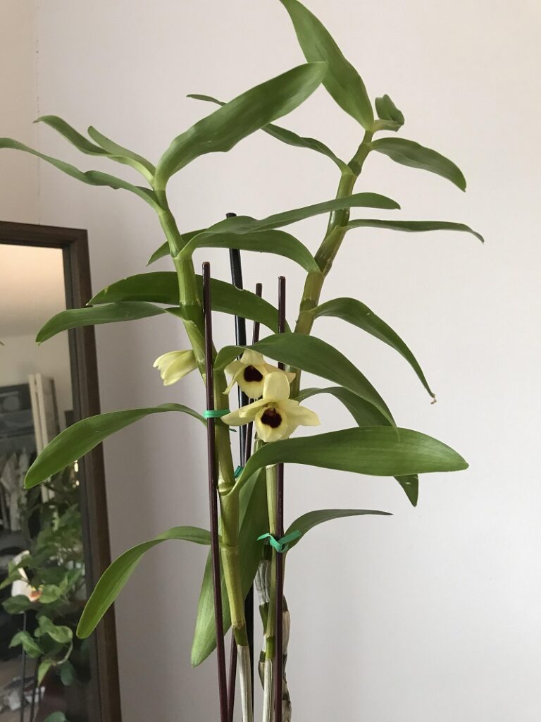 Yellow dendrobium orchid occurs after the flowering stage. The deciduous nature allows some leaves to turn yellow, wither, and drop off from the plant.
