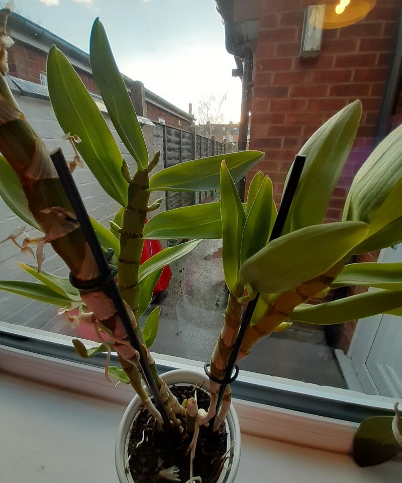 Staking dendrobium orchids help to enhance upright posture and prevent the risk of pot toppling due to heavy tops. Most orchid canes grow angle away from the pot.