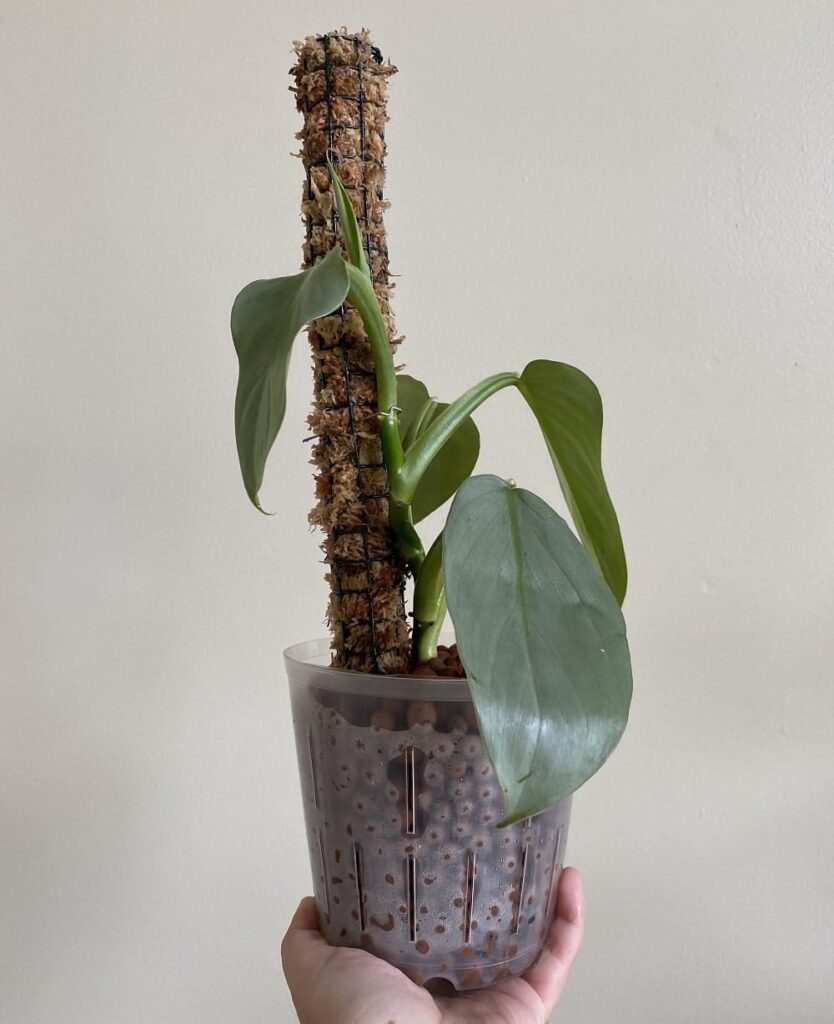 Moss poles are incredible products for climbing houseplants. It offers a surface for the aerial roots to cling and enable the plant to grow upward.