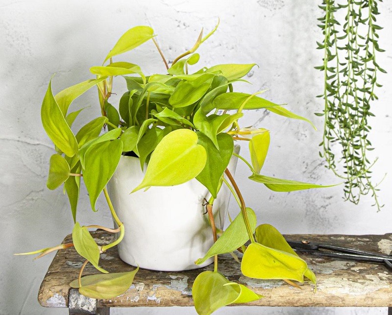 Philodendron lemon-lime plant has more benefits than neon pothos. It is worth buying since the indoor plant can match any décor and purify the air. (Check the Best Deals on Amazon).