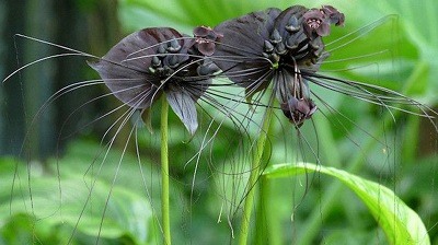 The black bat flower is my favorite choice due to its outlandish appeal that looks like a bat in flight. Besides that, the seedpods resemble small bat faces. It is a rare plant with deep purple-black ruffled blooms and hanging filaments.