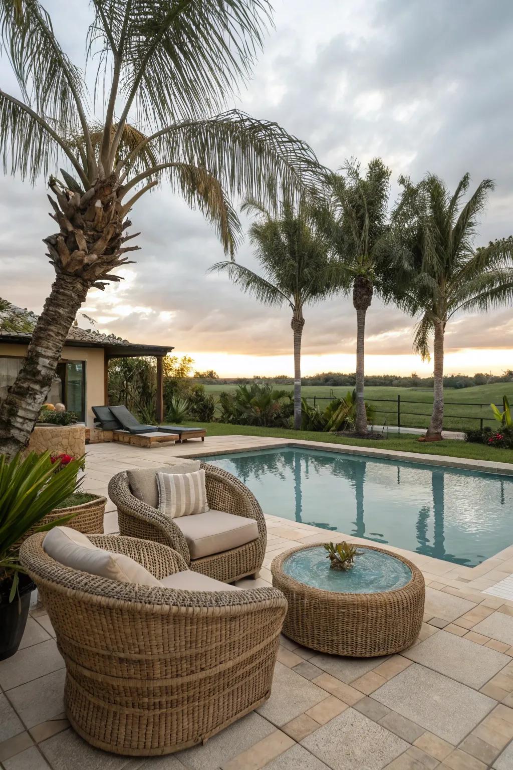 Infuse your poolside area with natural charm by incorporating textured accents. Think about using materials like bamboo, rattan, or intricately woven pieces. These elements not only add a touch of the tropics but also create a visually engaging space. Imagine lounging on a comfortable rattan chair, the texture adding to the overall sensory experience of your backyard retreat.