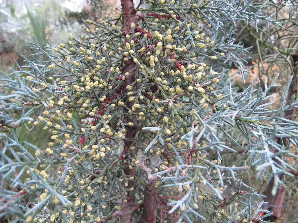 It is also called the atlas cypress tree since it hails from the atlas mountain of Southern Morocco. It produces sport blue leaves with white streaks and a unique gray trunk.
