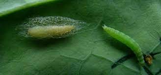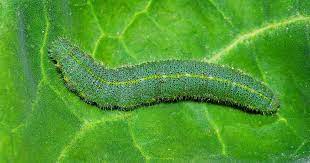 The cabbage white caterpillar has a huge appetite making it more destructive to crops and other vegetables in the garden. The bluish-green bodies with tiny black dots on the segments are conspicuous.