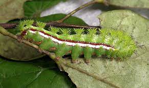 The spikes do not sting, although it causes skin irritations after coming into contact. It later becomes a reddish-brown luna moth after completing metamorphosis. These caterpillars feed on walnuts, hickories, pecans, and raspberries.
