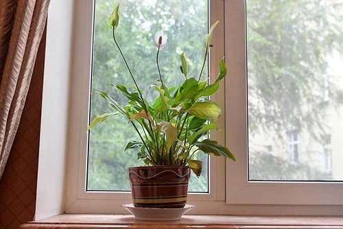 You can also install an electric humidifier to boost indoor humidity levels and keep the plant foliages green and glossy. Remember to follow a strict watering routine to maintain high humidity around your peace lily plant.